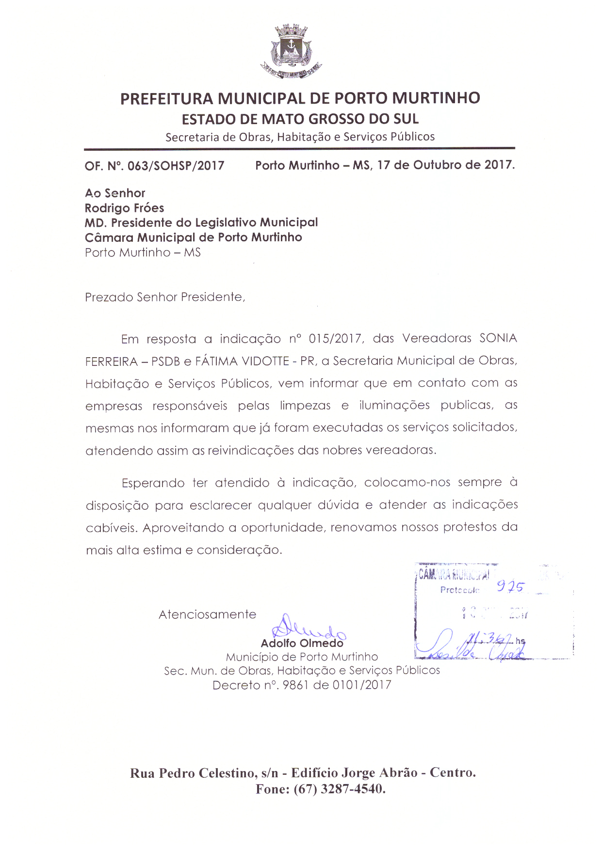 | Secretário de Obras | Ofício | 23/10/2017 | Adolfo Olmedo | 234.jpeg |