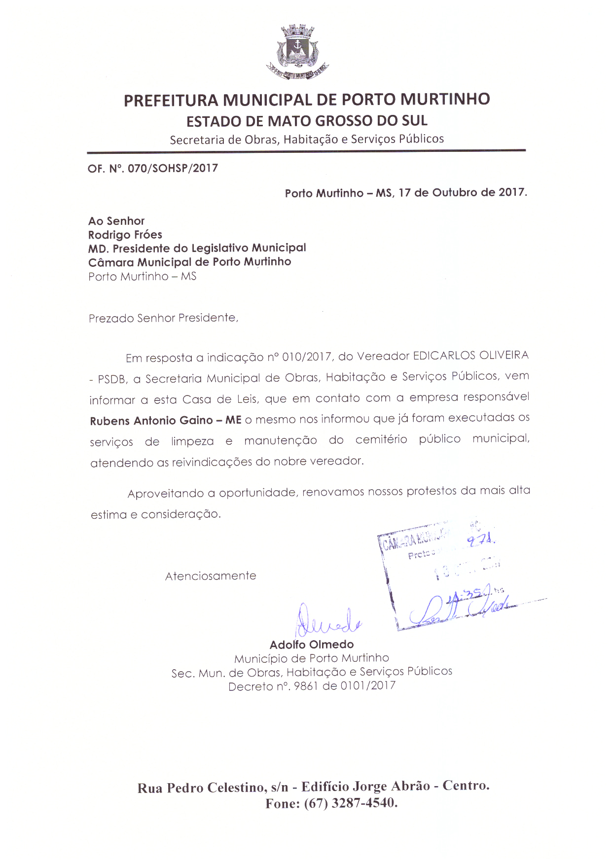 | Secretário de Obras | Ofício | 18/10/2017 | Adolfo Olmedo | 231.jpeg |
