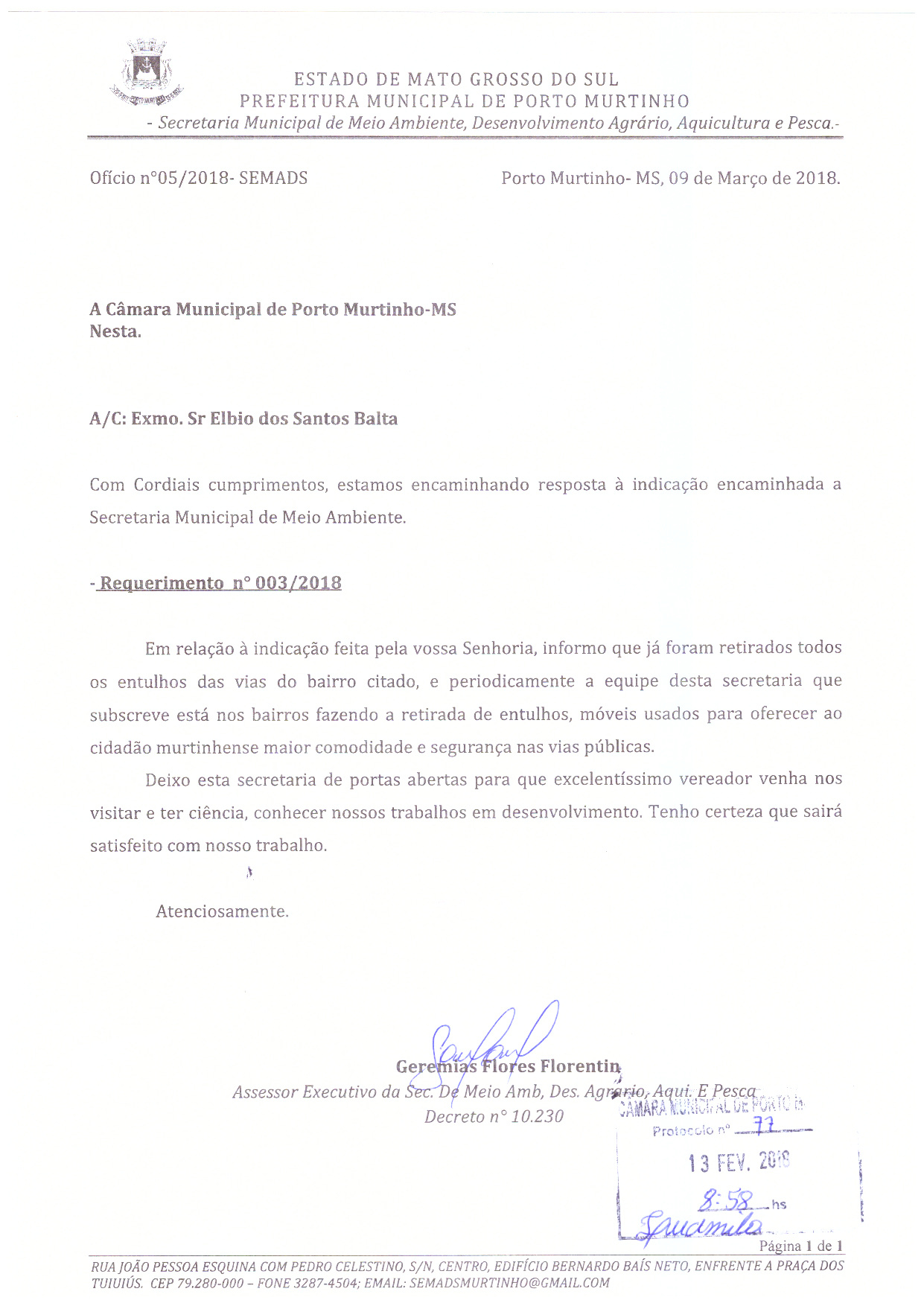 | Ass. Ex. de Meio Ambiente | Ofício | 13/03/2018 | Geremias Flores Florentin | 308.jpeg |