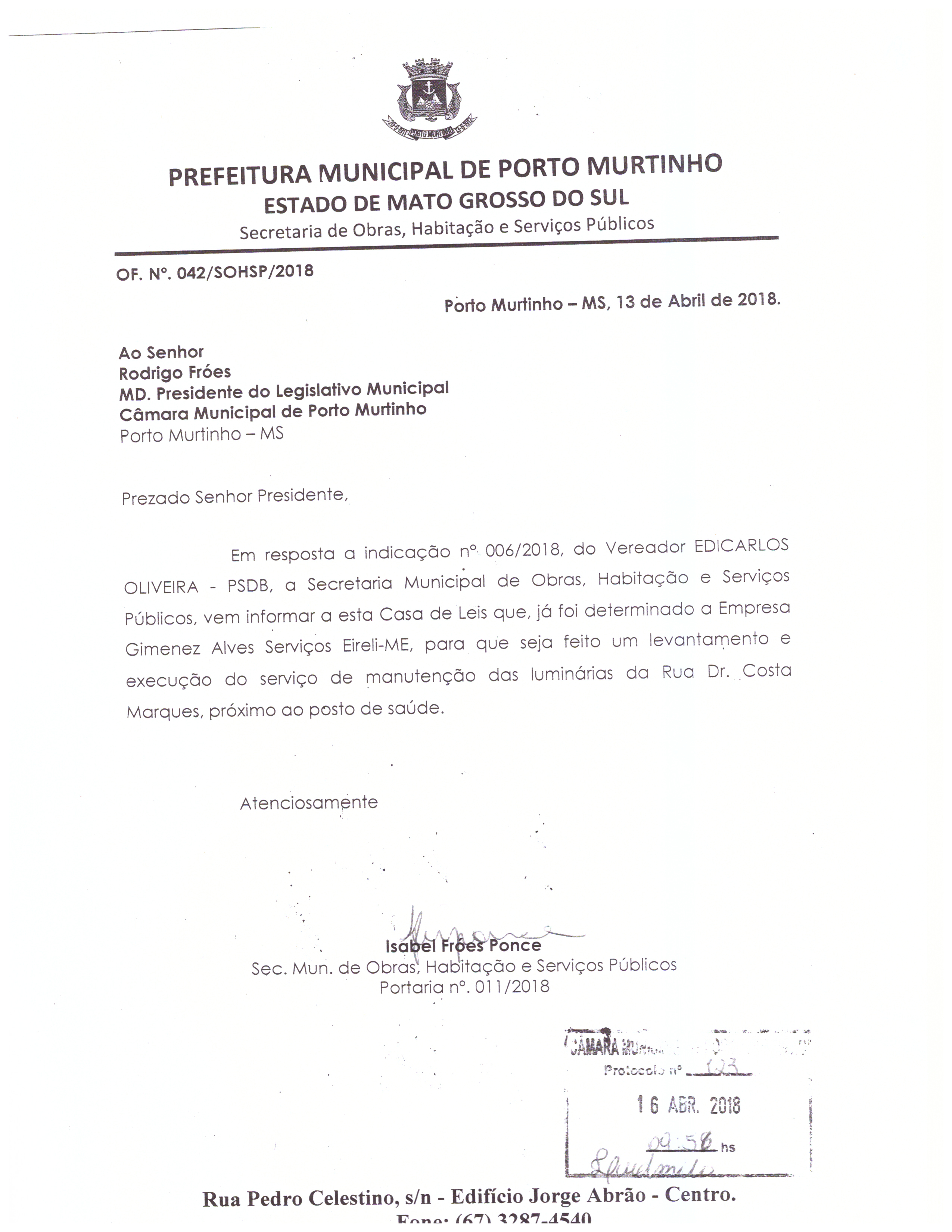 | Secretária de Obras | Ofício | 24/04/2018 | Isabel Fróes Ponce | 338.jpeg |